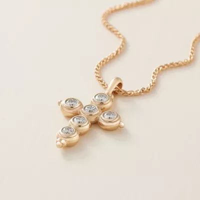 Petite Latin Cross Pendant with Diamonds in 18K Yellow Gold or 18K White Gold