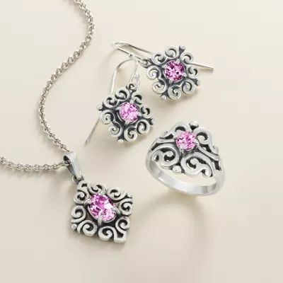 Inspired by old-world filigree, this design is accentuated by a bright round facted birthstone at its center. Note: Due to the one-of-a-kind nature of gemstones, exact colors and patterns may vary from what is shown in the image. RG-1242 Specifications