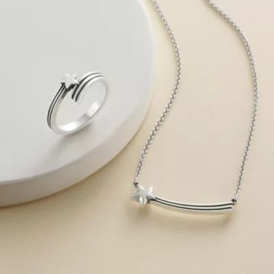 This design is retiring from our active line and once the remaining stock is sold, it will no longer be available. Inspired by a shooting star, the Stargazer Wrap Ring in sterling silver features a smooth star with traced lines trailing behind it—a reoccurring James Avery design motif. The wrap style makes a dramatic look on your finger and also stacks well with other rings. Makes an excellent graduation or birthday gift to remind others to keep shooting for the stars in life. Engrave the band with initials or a significant date to personalize. This design matches the Stargazer Necklace and coordinates well with our other celestial jewelry. RG-2099 Specifications
